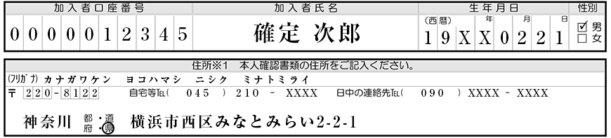 印字されている住所の変更が必要な場合は、住所変更のお手続きのうえ、二重線で抹消して余白へ正しい内容をご記入ください。住所変更のお手続きには、お時間がかかる場合がございます。 - 日中の連絡先TEL欄